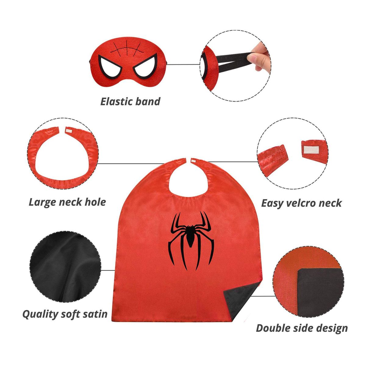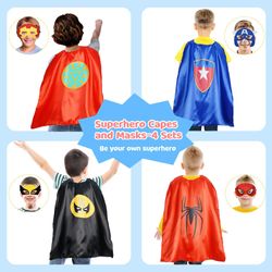 High-quality materials featuring satin capes with vibrant colors and kids-friendly fabrics. The mask is made of premium felt and is easily adjustable to strap onto any size head. They can be comfortably worn for long periods of time. Your children probably love playing with? kids dress up clothes daily. With our popular costumes for boys, they can enjoy wearing their glow-in-the-dark superhero capes and superhero masks?while playing heroes with friends.